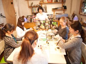 - 実際に永年サロンとして使われている場所で、独立開業しているベテラン講師の授業実習。各自のなりたい「アロマセラピスト像」が描きやすい。
